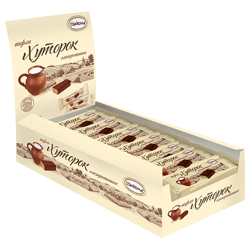 Батончик вафельный глазированный хрустящий с начинкой, изготовленной на основе натуральных молочных продуктов