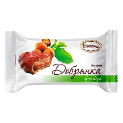 Десерт глазированный в вафельном корпусе в обсыпке крупкой арахиса с кремовой начинкой на основе фундука.