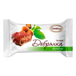 Десерт в молочной шоколадной глазури с кремовой начинкой с добавлением крупки фундука в вафельном корпусе с обсыпкой воздушным рисом.