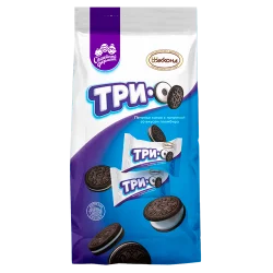 Печенье оригинальное трёхслойное, сочетающее тёмное хрустящее печенье и кремовую начинку со вкусом классического пломбира, изготовленного из натурального молока