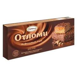 Торт вафельный с молочной карамелью и кремовой начинкой, посыпанные крупкой арахиса и воздушным рисом, глазированный