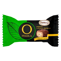 Конфеты глазированные, сочетающие в себе вафельный корпус и нежную кремовую начинку со вкусом сливок, с вложением цельного фундука