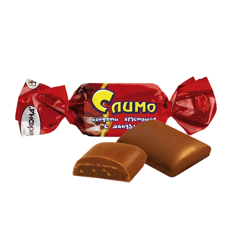 Конфеты в молочной шоколадной глазури из хрустящей карамельной массы с дроблёным миндалём